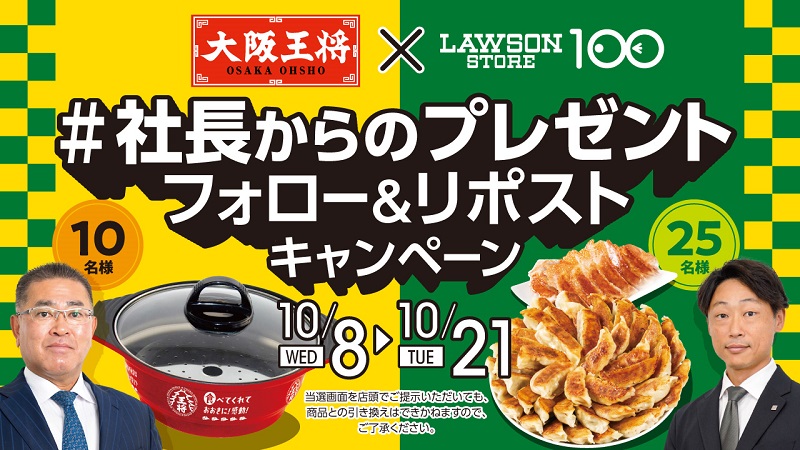 ローソンストア100は、餃子の名店「大阪王将」(株式会社イートアンドフーズ/東京都品川区)とのコラボを開催します!