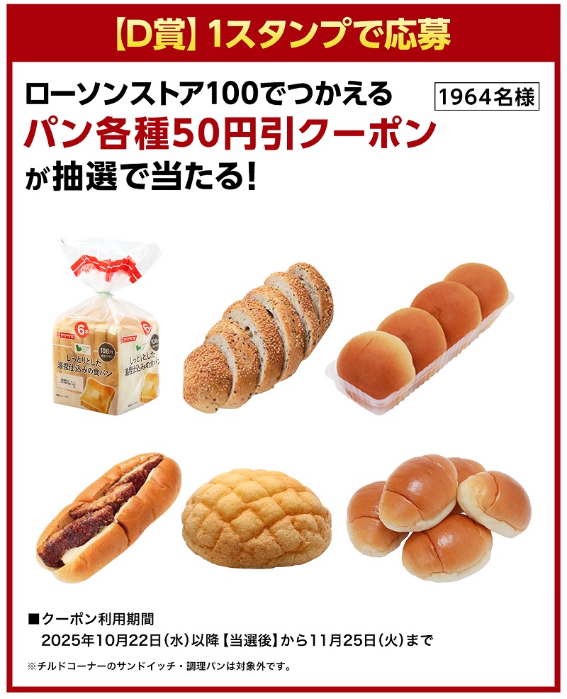 ローソンストア100で、キャンペーン期間中にPontaカードまたはdポイントカードをご提示の上、対象商品を購入すると、対象商品1個ご購入ごとにスタンプ(ちいさなメダル)を1つ進呈します。