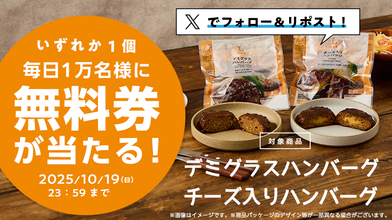 今回は「デミグラスハンバーグ・チーズ入りハンバーグ」が対象です!