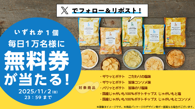 10月29日(水)スタート♪毎日1万名様に抽選で「対象のローソンオリジナルポテトチップス」無料券をプレゼント!