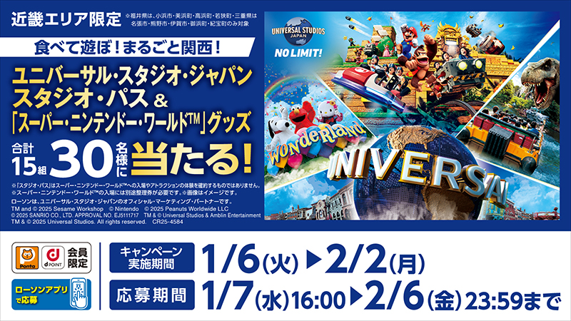 【近畿エリア情報】1/6(火)開始 食べて遊ぼ!まるごと関西! 対象商品を購入し、ユニバーサル・スタジオ・ジャパン 1デイ・スタジオ・パスを当てよう!