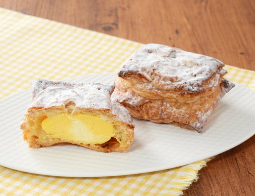 サクっとした食感のパイ生地に、カスタードクリームを入れたシュークリームです。