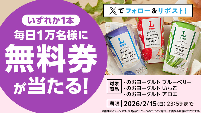 2月11日(水)スタート♪毎日1万名様に抽選で「対象のローソンオリジナルのむヨーグルト」無料券をプレゼント!