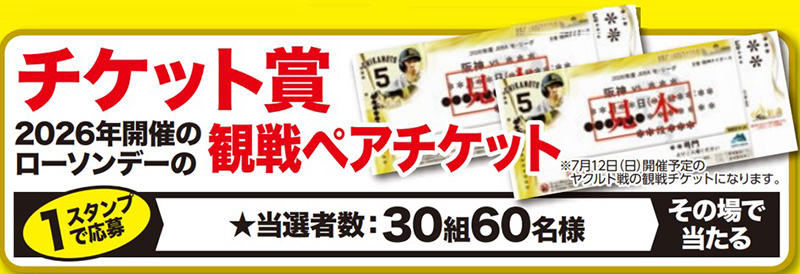 2026年7月12日(日)開催のローソンデーの1塁アルプス席観戦ペアチケットプレゼント30組60名様