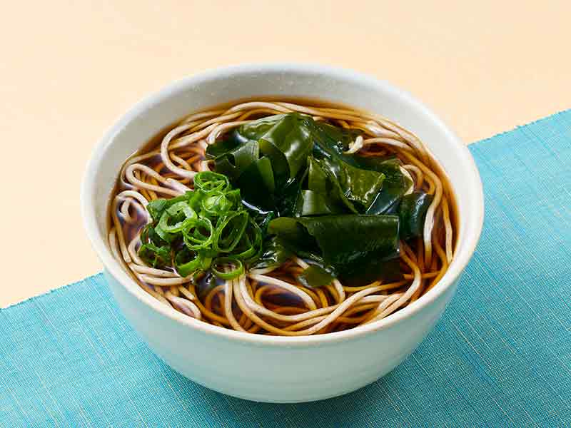 石臼挽きそば粉を使用したそばに三陸産わかめをトッピングしました。