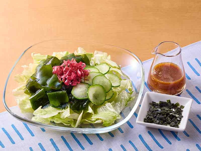 食感の良い三陸産わかめとごま油をきかせたドレッシングで味わうチョレギサラダです。
