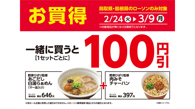 2026年2月24日(火)~3月9日(月)期間中、島根県/鳥取県内のローソンで上記麪家ひばり監修商品2品