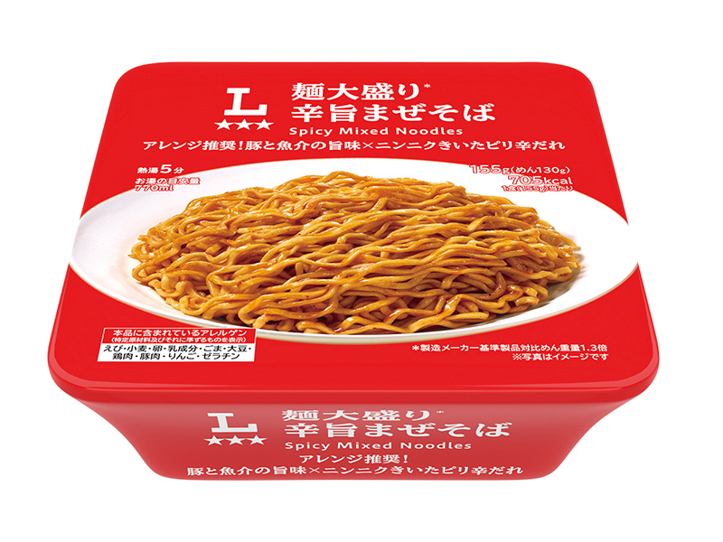魚介と豚肉の旨みに、ニンニクと唐辛子でパンチを効かせた食べ応えのあるまぜそばを、人気の麺大盛りシリーズでどうぞ。