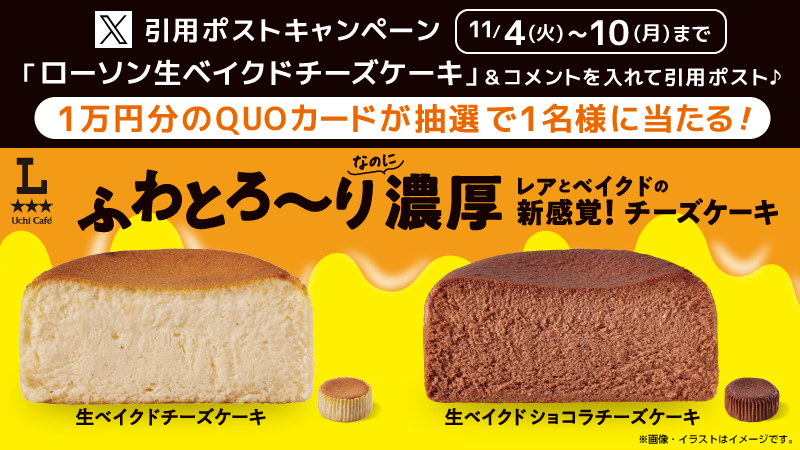 期間中、ローソン公式Xアカウント「 ローソン(@akiko_lawson) 」をフォローし、対象ポストに「 ローソン生ベイクドチーズケーキ 」とコメントを付けて引用ポストした方の中から抽選で1名様に以下の賞品をプレゼントいたします。