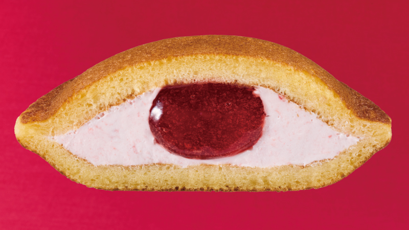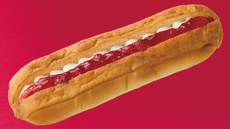 果肉感じるいちごソースを、ふんわり食感のシューロールパンにサンドしました。