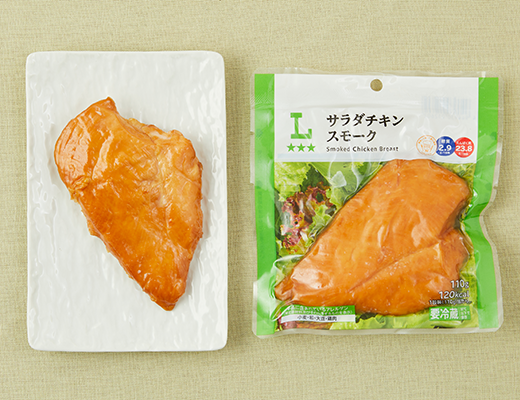 鶏むね肉を塩味でシンプルに味付けし、スモークしました。スモークすることで、うまみがギュッと詰まり、しっとり柔らかく仕上がっています。
