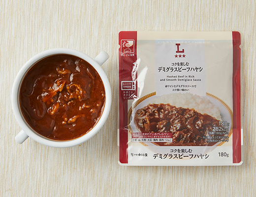 赤ワインとデミグラスソースを使用したコク深い味わいが特徴です。