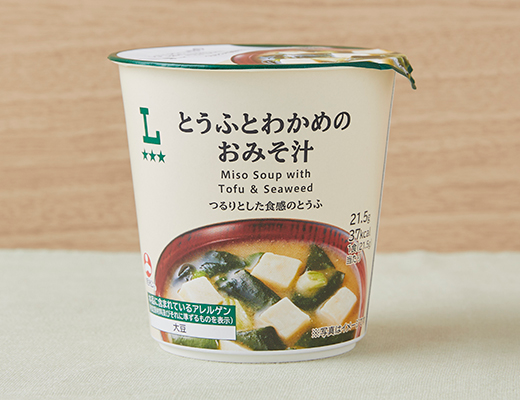 つるりとしたなめらかな食感のとうふとわかめ、ねぎが入ったおみそ汁です。