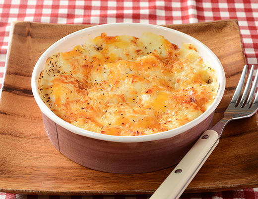 こだわりの牛乳と生クリームを使用したホワイトソースを、舌触りなめらかなでクリーミーに仕立てました。北海道産生乳を使用したゴーダチーズを使用し、チーズ感をUPさせました。