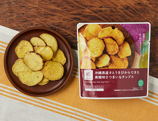 沖縄県産さとうきびからできた黒糖味さつまいもチップス