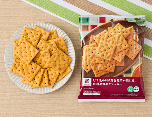 10種の野菜を練りこんだ、サクサク食感のクラッカーです。