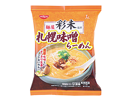 麺屋彩未監修商品。本格的な札幌味噌ラーメンが手軽に楽しめる。