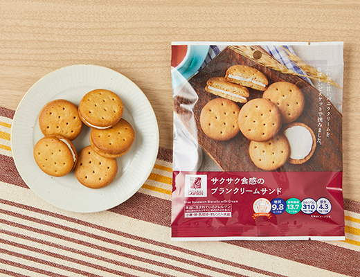 ふわっと甘いバニラクリームを香ばしいビスケットで挟みました。