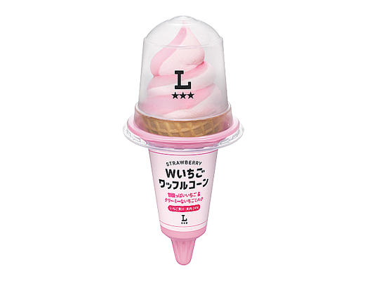 甘酸っぱいいちごアイスとクリーミーないちごミルクアイスの2つの味が楽しめるワッフルコーンアイスです。
