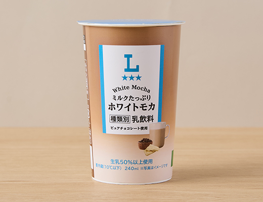 生乳を50%以上使用。ピュアチョコレートを使用した柔らかな甘さのホワイトモカ。