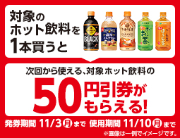 対象のドリンク剤を2個同時購入で50円引、3個同時購入で100円引