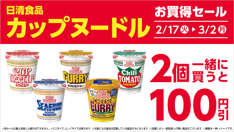 | ●下記対象商品のうち、2個一緒に買うと100円引(税込) | |