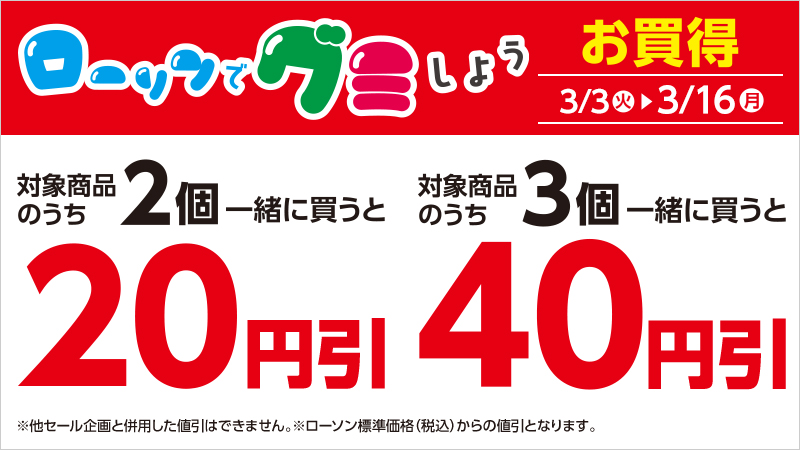 ※『スマホレジ』決済は対象外となります。 - ※赤文字の価格はローソン標準価格(税込)からの値引後価格(税込)となります。ただし、セール開始前から販売中の新商品においては、発売日からセール前日までの販売価格(税込)からの値引となり、セール期間中に発売する新商品においては、セール終了後の販売予定価格(税込)からの値引となります。