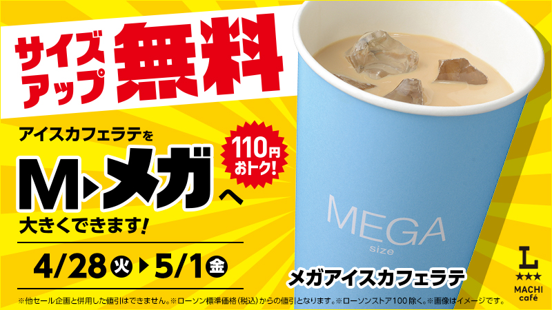 | メガアイスカフェラテ | 390円 | → | 280円 |