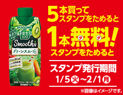 カゴメ野菜生活100スムージー 330ml各種を5本購入で1本無料券がもらえるキャンペーン