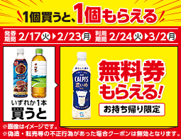 ホット飲料値引券がもらえるキャンペーン