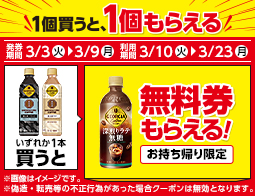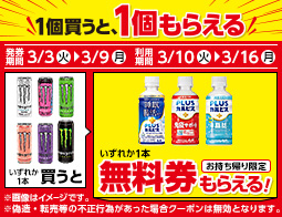対象の飲料を2本同時購入で50円引、3本同時購入で100円引