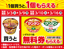 対象のお菓子を2個同時購入で30円引、3個同時購入で60円引