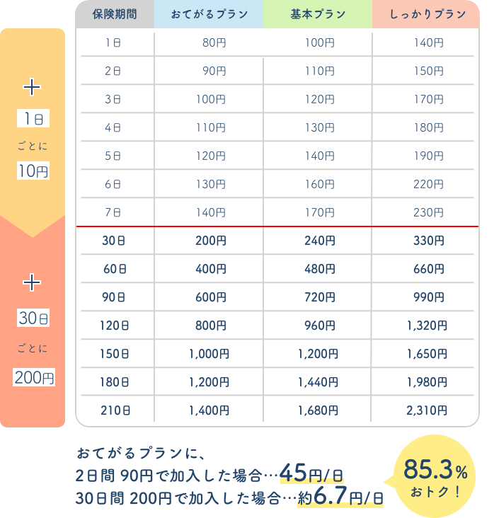 ※2 おてがるプランに1日加入した場合の保険料
