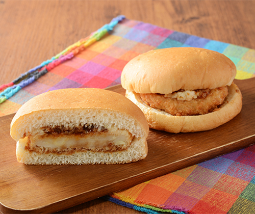 マカロニ入りのクリーミーなグラタンコロッケとぶなしめじ入りのデミグラスソース・マヨネーズをトッピングしたバーガーです。