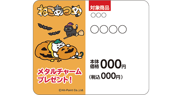 ※サイズ:40×40mm以内/厚み0.5mm(こいこいさんのみ50×50mm) ※画像はイメージです。 ※デザイン・色・仕様などは変更になる場合がございます。 ※対象商品3点と景品1点を直接レジにお持ちください。 ※店舗によって対象商品をレジにてお買い上げの際に、景品と交換する場合がございます。ご了承ください。 ※数量限定につき、なくなり次第終了となります。 ※画像はイメージです。 ※お一人様1回のお買い物につき、各種1個、計5個までとさせて頂きます。 ※画像はイメージです。 ※デザイン・色・仕様などは変更になる場合がございます。 レシート有効期間 2015年10月13日(火)~10月31日(土) レシート応募締切 2015年11月6日(金) ※当日消印有効 応募方法 ①キャンペーン期間中、対象のお菓子いずれか3個を購入したレシートでご応募ください。 ②市販のハガキまたは封筒に対象商品3個を含むレシートを貼り、「応募口数、お名前、郵便番号、ご住所、お電話番号」を明記の上、所定金額分の切手を貼って下記宛先へ送付ください。封筒でのご応募も可能です。 応募宛先 〒100‐8781 日本郵便株式会社 銀座郵便局 私書箱831号 「ねこあつめキャンペーン事務局」係 ※当選者の発表は景品の発送をもってかえさせて頂きます。 ※景品の発送は12月末を予定しております。 ご注意 ※お一人様何回でもご応募いただけますが、一回のご応募は最大4口までとさせていただきます。 ※店頭でのご応募は受け付けておりません。 ※必要事項に記入漏れがある場合は、当選を無効とさせていただきます。 ※所定金額分の切手が貼られていない場合、ご応募は無効となります。 ※ご応募いただいたレシートはご返却できません。 ※ご当選された方の住所、転居先が不明などの理由により賞品がお送りできない場合は、当選を取り消させていただく場合がございます。 ※当選発表は、厳正な抽選の上、賞品の発送をもってかえさせていただきます。 ※賞品の発送は12月末予定です。 ※2016年1月31日(日)までに賞品をお受け取りいただけない場合、当選権利は失効いたします。 ※賞品の発送は日本国内に限らせていただきます。 ※賞品のデザイン・色・仕様などは、変更になる場合がございます。 ※ハガキ、または封筒に記載のご住所に賞品を発送いたします。 ※賞品到着後の紛失・破損などにつきましては対応いたしかねます。 ※当選の権利を他人に譲渡ならびに換金することはできません。 ※本キャンペーンは、ナチュラルローソン、ローソンストア100の店舗においては実施いたしません。また、上記以外にも一部実施しない店舗がございます。 ※本キャンペーンのご当選者は、同時期に実施している他のキャンペーンでの重複当選はできない場合がございます。 ※当選賞品のオークション出品は固く禁じます。 ※郵送料はお客様のご負担となります。 個人情報の取り扱いについて 1.キャンペーン応募時の個人情報は、抽選、賞品の発送、関連するお問い合わせ対応のためにのみ利用し、それ以外の目的には利用いたしません。 2.キャンペーン応募時の個人情報は、法令の要請を除き、お客様の同意なく業務委託先以外の第三者に開示・提出いたしません。 3.キャンペーン応募時の個人情報は、キャンペーン事務局にて厳重に管理し、キャンペーン終了後は安全・適切に廃棄いたします。 明治 ゴチグミグレープ 52g本体価格100円(税込108円) 明治 ストロベリーチョコレートキュービー 28g本体価格100円(税込108円) 明治 ハイミルクチョコレートキュービー 38g本体価格100円(税込108円) 明治 ガルボミニポケットパック 42g本体価格122円(税込132円) 明治 ガルボミニつぶ練り苺ポケットパック 40g本体価格122円(税込132円) 明治 ミルクチョコレート 50g本体価格110円(税込119円) 森永製菓 ハイチュウストロベリー味 12粒本体価格95円(税込103円) 森永製菓 ハイチュウミニ 40g本体価格100円(税込108円) 森永製菓 ベイクショコラ 10粒本体価格128円(税込138円) アサヒ 三ツ矢サイダーキャンディ 136g本体価格148円(税込160円) 不二家 ミルキー 120g本体価格185円(税込200円) 不二家 ハロウィンポップキャンディ 18本本体価格200円(税込216円) ロッテ コアラのマーチ チョコ 50g本体価格100円(税込108円) ブルボン チョコあ~んぱん 50g本体価格100円(税込108円) ブルボン 濃厚チョコブラウニー 1個本体価格100円(税込108円) 江崎グリコ いちごポッキー 41g本体価格93円(税込100円) 江崎グリコ ジャイアントカプリコ ガブニャンのブルーベリーヨーグルト味 1本本体価格111円(税込120円) 江崎グリコ ポッキー プリチーなココア味 42g本体価格111円(税込120円) カルビー じゃがりこゴロゴロほたてバター 52g本体価格148円(税込160円) カルビー じゃがりこゴロゴロチーズベーコン 52g本体価格148円(税込160円) ハート ハロウィンテトラパック 12個本体価格350円(税込378円) ハート ディズニーハロウィン棒付きキャンディ 1本本体価格180円(税込194円) ハート 妖怪ウォッチハロウィンマシュマロ 65g本体価格200円(税込216円) チロ