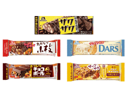 森永製菓 ザクザクブラックバー/丸かじり小枝/クリスピー白いダース/ぎっしりチョコボールバー/ミルクキャラメルクランチバー