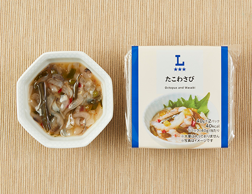 イイダコの食感とわさびの辛みが絶妙にマッチ。魚醤とかつおだしでうまみを加えました。