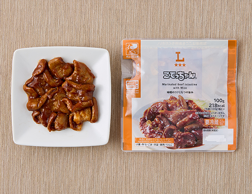 3段階の加熱でやわらかな食感にした牛もつを三種類の味噌にあわせ本醸造醤油・ローストガーリック・ローストオニオンで深みのある味に仕上げています。