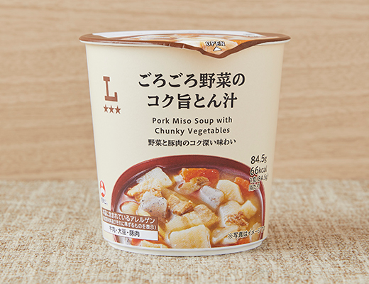 ごろごろとした野菜と豚肉の濃厚な旨みをいかした食べ応えたっぷりのとん汁です。