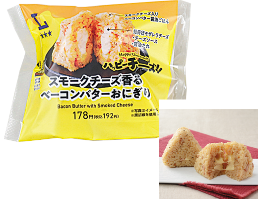 スモークチーズを混ぜ込んだベーコンバターごはんで、短冊状のモザレラチーズとチーズソースを包みました。