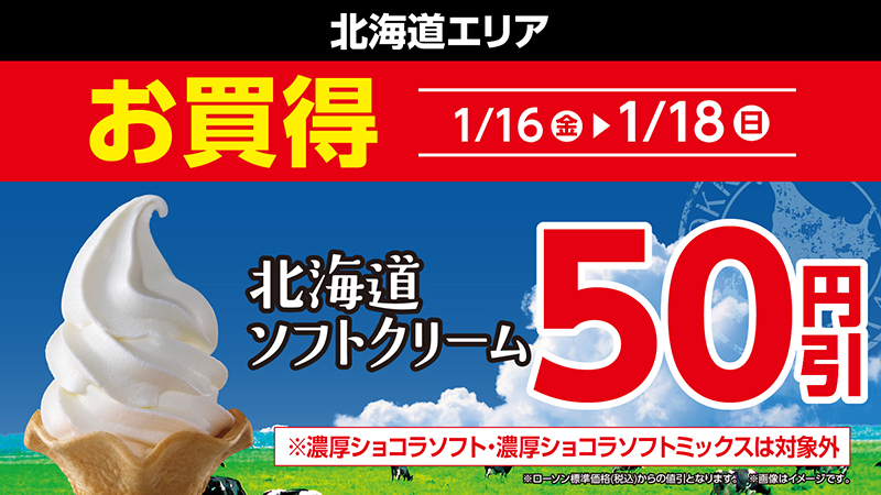 | 北海道ソフトクリーム ※濃厚ショコラソフト、濃厚ショコラソフトミックスは対象外です。 |